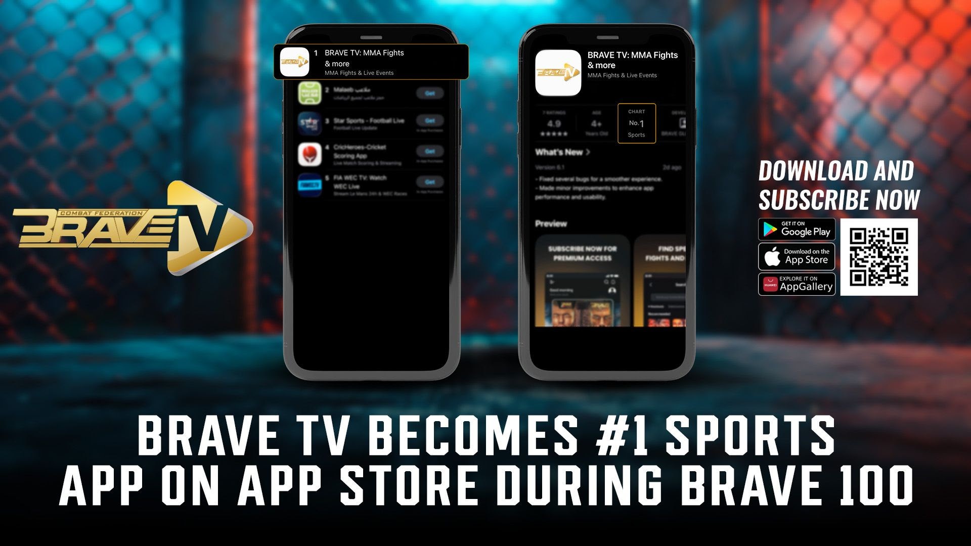 BRAVE TV officially reached the number one spot in the Sports category on the App Store on Friday, 7 November 2025 - the same day BRAVE Combat Federation celebrated its centennial event at Khalifa Sports City Arena in Isa Town, Bahrain. This achievement marks a defining moment for the fastest-growing MMA organisation in the world.
